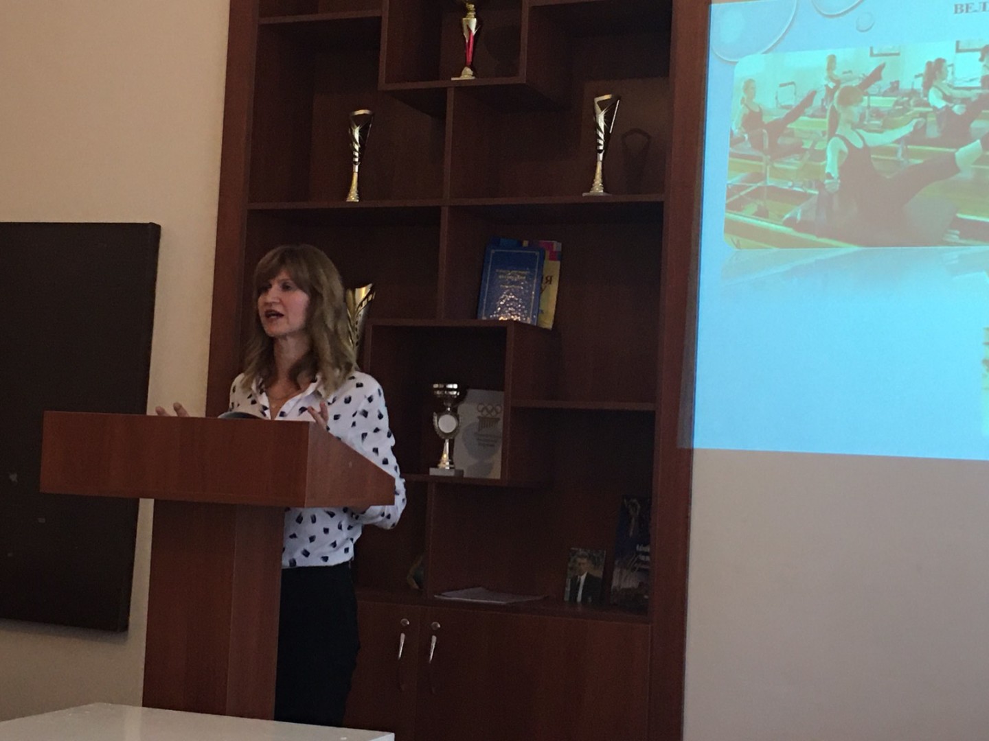 1 жовтня 2020 року доцент кафедри гімнастики та спортивних єдиноборств, доктор наук з фізичного виховання і спорту Тодорова Валентина Георгіївна в рамках співпраці зі стейкхолдерами провела бінарне заняття за участі віце-президента Обласної Федерації аеробіки Косянчук Оксани Вікторівни зі здобувачами вищої освіти другого рівня спеціальності 017 Фізична культура і спорт. Мета заняття - підвищення рівня знань здобувачів вищої освіти, набуття ними практичних навичок. Косянчук О. В. провела зі здобувачами вищої освіти лекцію с презентацією на тему «Інноваційні засоби, що використовують в техніко-естетичних видах спорту». Під час бінарного заняття були обговоренні основні напрямки і засоби системи пілатесу, а також проблемні питання відновлення спортсменів. Віце-президент Обласної Федерації аеробіки поділилась власним досвідом та відповіла на усі запитання присутніх.
