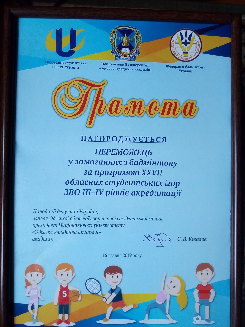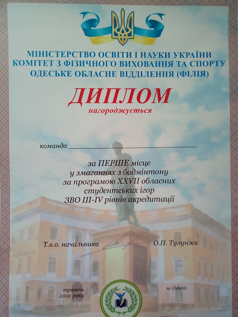 15–16 травня 2019 року в межах Одеської обласної мiжвузiвської Спартакiди відбувся турнiр з бадмiтону.
