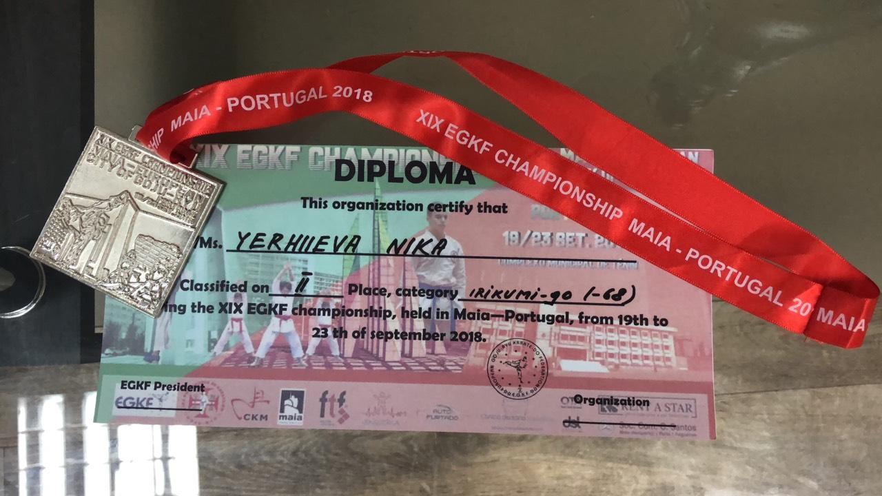З 18 по 23 вересня 2018 року в місті Майя (Португалія) проходив Чемпіонат Європи з годзю-рю карате. За результатами змагань друге місце серед дівчат старшого віку з карате у ваговій категорії до 69 кг посіла студентка першого року навчання інституту фізичної культури, спорту та реабілітації Університету Ушинського Єргієва Ніка. Вітаємо з перемогою !