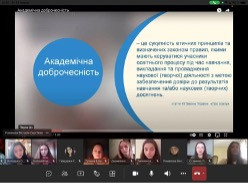 Метою заходу було - ознайомити студентів із поняттям «академічна доброчесність», визначити основні принципи її дотримання та порушення. Студенти також отримали пропозиції щодо підвищення рівня академічної доброчесності.Учасники зустрічі з великою цікавістю слухали доповідь, ставили запитання та мали можливість порівняти, як дотримання академічної доброчесності впливає на розвиток науки. Після обговорення теми студенти мали змогу закріпити інформацію, взявши участь у невеличкій вікторині.