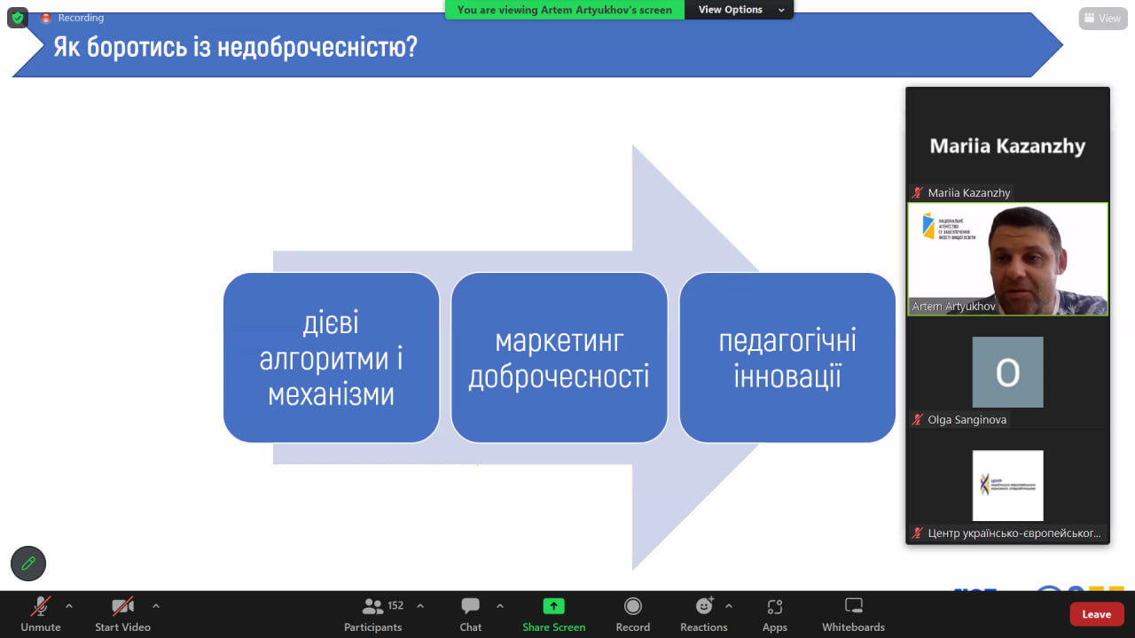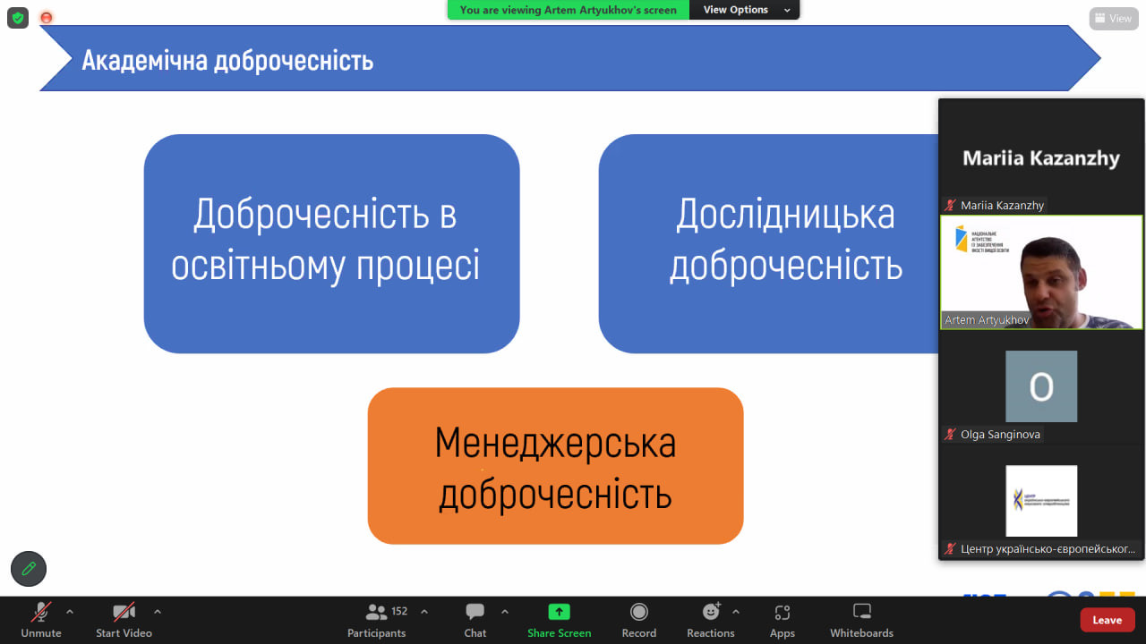 Артем Артюхов – кандидат технічних наук, доцент, старший дослідник, керівник Групи сприяння академічній доброчесності Сумського державного університету, член Національного агентства із забезпечення якості вищої освіти, міжнародний інженер-педагог (Ing.Paed.IGIP), координатор модуля Жана Моне «AICE – With Academic integrity to EU values: step by step to common Europe».