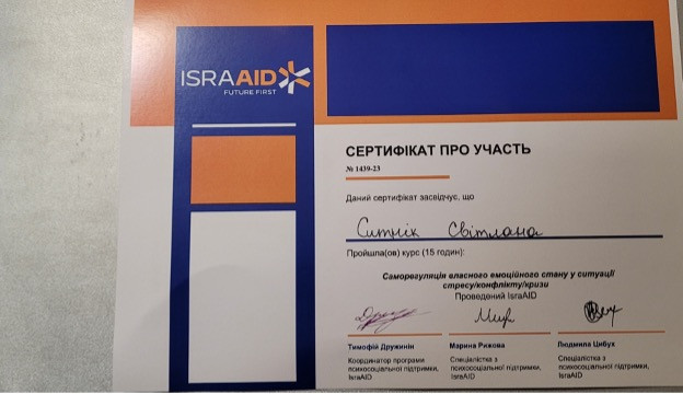 17.11.2023 року відбувся психологічний тренінг "Саморегуляція власного емоційного стану у ситуації стресу/ конфлікту/ кризи" у межах стратегії міжнародної організації IsraAID.