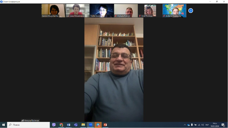 10 січня 2024 року в онлайн форматі відбулася зустріч групи забезпечення освітньо-наукової програми «Політологія» за третім (освітньо-науковим) рівнем вищої освіти за спеціальністю 052 Політологія. Проєкт програми в грудні 2023 року був оприлюднений на офіційному вебсайті Університету Ушинського у відкритому доступі, отже, до обговорення мали змогу долучитися всі бажаючі. Під час онлайн-зустрічі, участь в якій взяли зовнішні стейкголдери освітньої програми – представники академічної спільноти, доктори політичних наук Юлія Узун (ОНУ імені І. І. Мечникова), Микола Польовий (ДНУ імені Василя Стуса), Микола Палінчак (УжНУ), були обговорені мета, програмні результати навчання та інші питання реалізації програми за цією спеціальністю. ОНП у вересні 2023 року приведене у відповідність до Стандарту ВО, мета та завдання корелюють із новими стретегічними пріоритетами, визначеними Стратегією розвитку університету до 2030 року, тому програма не потребує змін. Водночас, у межах співпраці між університетами-партнерами, представники яких були присутні на зустрічі, досягнуто домовленостей про продовження досвіду обміну викладачами за програмою «Гостьовий лектор», а також організації внутрішньої мобільності аспірантів в другому семестрі 2023/2024 н.р.