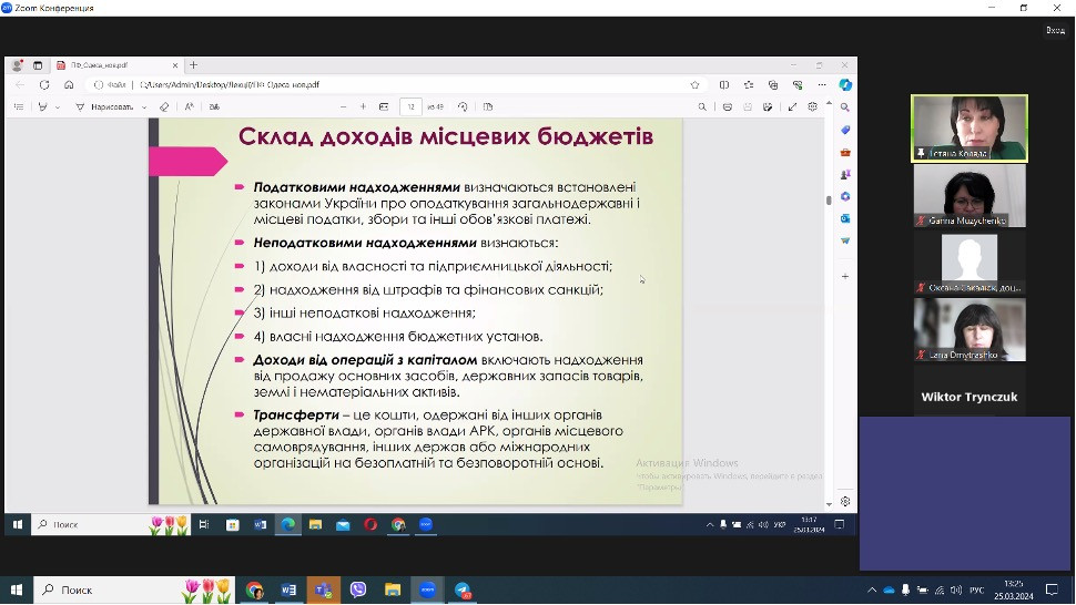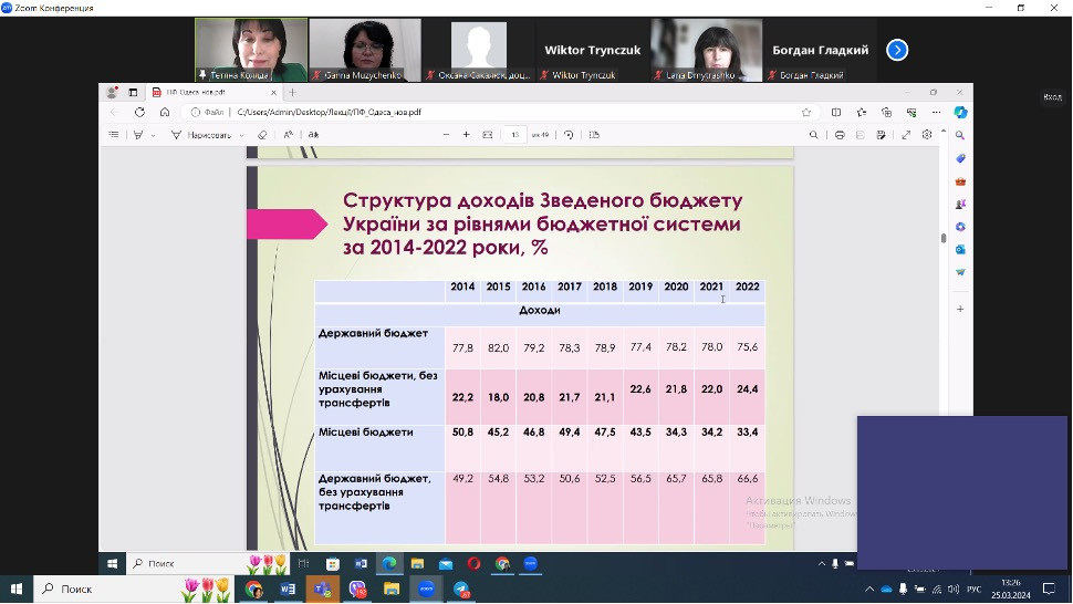 На лекції піднімалися актуальні питання управління публічними фінансами на місцевому рівні в умовах війни, а також напрями державної політики України щодо зміцнення фінансових основ діяльності органів місцевого самоврядування та сталого розвитку громад.