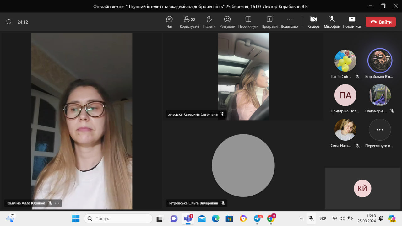 До участі у заході також було запрошено старшого викладача кафедри прикладної математики та інформатики В.А.Корабльова, який презентував доповідь за темою « Штучний інтелект та академічна доброчесність».