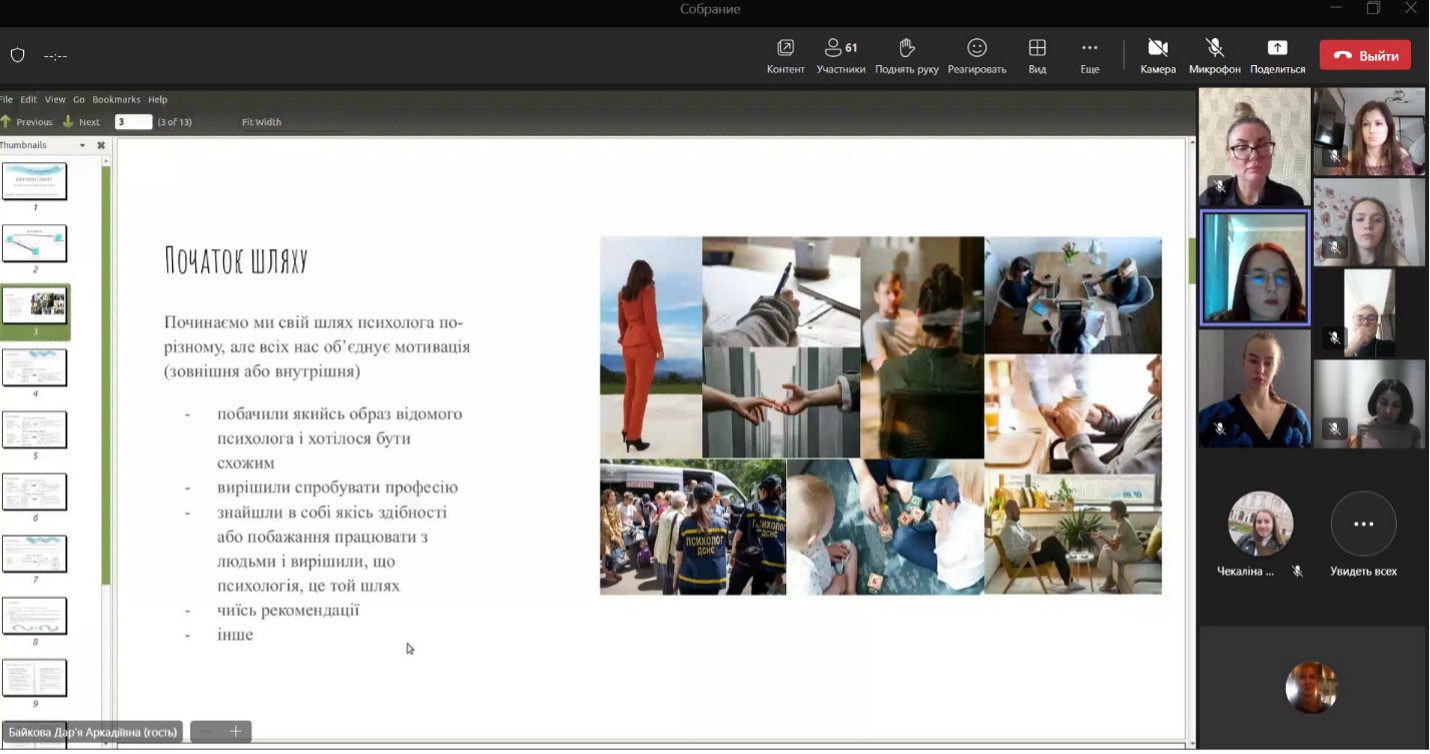 Професійний шлях спікера вебінару, її особистий досвід просування у професії зацікавив здобувачів і викликав жваву дискусію