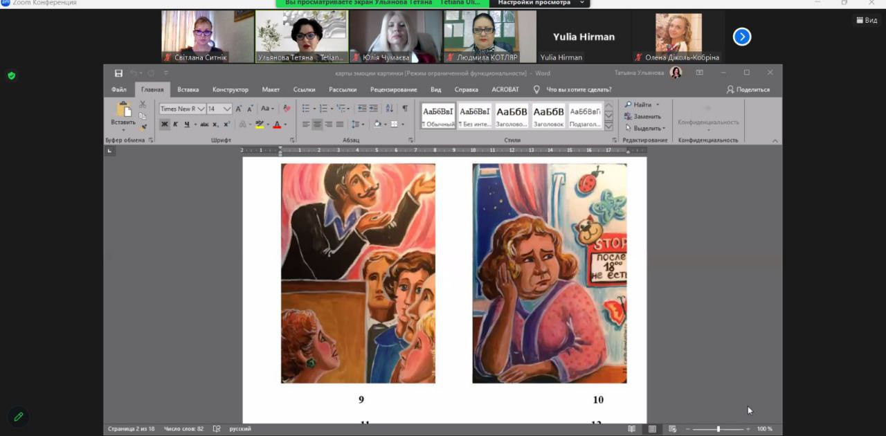Ведуча майстер-класу, кандидат психологічних наук, доцент, доцент кафедри загальної та диференціальної психології Університету Ушинського Тетяна УЛЬЯНОВА, розповіла про різноманіття інструментів арт-терапії, зокрема, метафоричні асоціативні карти і можливості їх застосування в психологічній роботі з різними категоріями цивільного населення, військовими і працівниками морегосподарської галузі.
