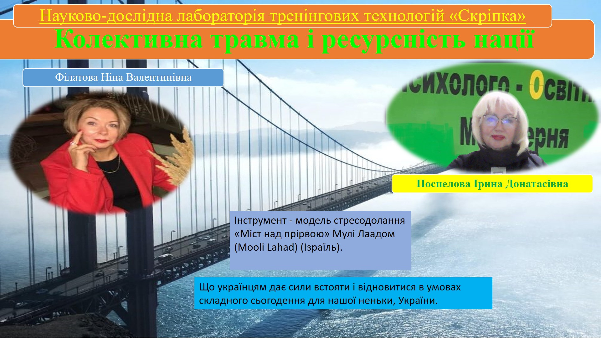 26.09.2024 відбулося чергове онлан-засідання науково-дослідної лабораторії тренінгових технологій «Скрепка», присвячене обговоренню актуальної теми «Колективна травма і ресурсність нації» (