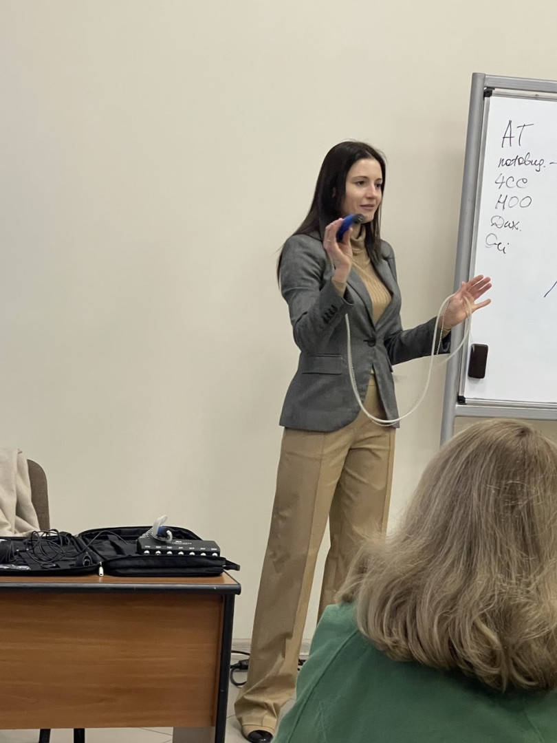 Аспіранти ознайомилися з роботою лабораторного обладнання для проведення психофізіологічних та психодіагностичних досліджень, як-то: Система аудіотренування Rulisten (Tomatis) для сенсорної звукової стимуляції; Аудіометр «AUDITUS-A1» для суб’єктивних досліджень слухової функції методами тональної порогової, надпорогової й мовної аудіометрії у дорослого і дитячого контингенту обстежуваних; Поліграф «Бар'єр 14», призначений для реєстрації і запису фізіологічних параметрів, що фіксуються у досліджуваного в процесі психофізіологічного дослідження.