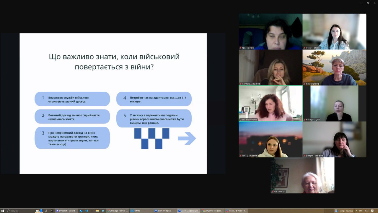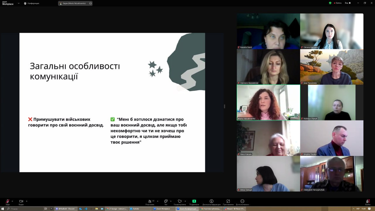 І етап академічної мобільності в межах міжнародного проєкту IFES за програмою «Democracy: from theory to practice» триває. Проф. Оксана Петінова та доц. Інна Проноза взяли участь у вебінарі «Взаємодія з ветеранами у навчальному процесі: психологічні та юридичні аспекти».
