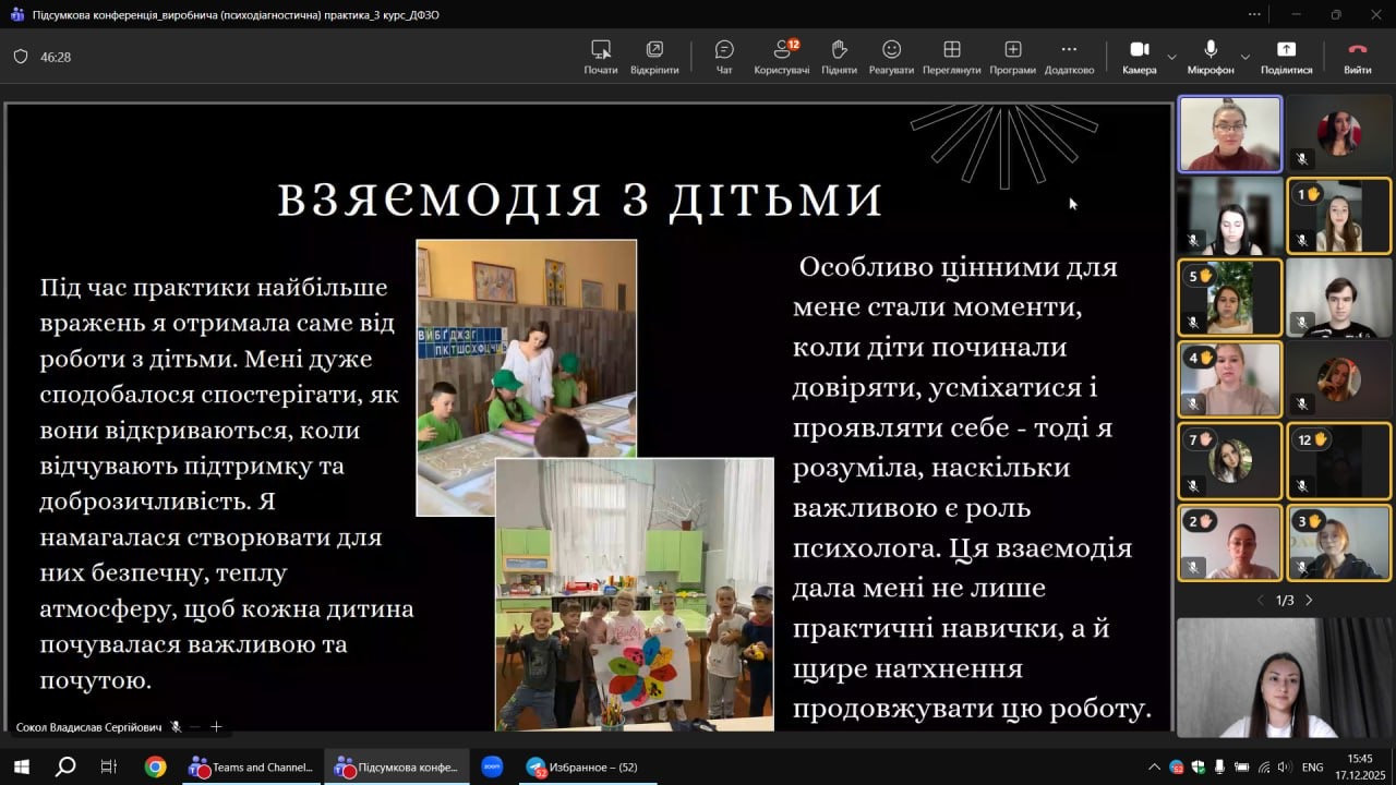 Підсумкова конференція за результатами проходження виробничої (психодіагностичної) практики здобувачами 3 курсу першого (бакалаврського) рівня вищої освіти денної форми здобуття освіти за спеціальністю 053 «Психологія» ОПП «Психологія»
