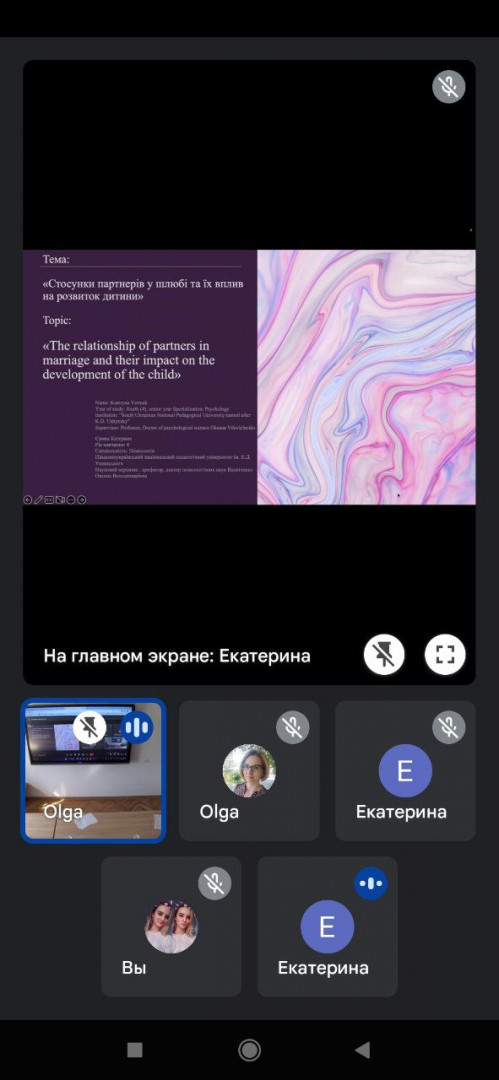 10.03.2023 року здобувачі першого (бакалаврського) рівня вищої освіти 4 року денної форми навчання за спеціальністю 053 Психологія прийняли участь у Міжнародній науково-практичній конференції "National session with international participation of student scientific communications, 27th edition", яка відбулась на факультеті психології, педагогічних наук, соціології та соціальної допомоги у Moldova State University. Здобувачі виступили з доповідями та прийняли участь у науковій дискусії. Вікторія Панченко виступила з презентацією на тему "Психологічні особливості готовності студентів до сімейного життя", Єрмак Катерина з доповіддю «Стосунки партнерів у шлюбі та їх вплив на розвиток дитини», Сембрак Анна розповіла про результати дослідження впливу стилю батьківського виховання на спортивні досягнення дитини, а Шпаковська Юлія - про зв‘язок самопрезентації особистості в інтернеті з її реальною ідентичністю. Здобувачі із зацікавленістю були залучені до науково-дослідницької діяльності, обмінювались знаннями та досвідом, задавали запитання.