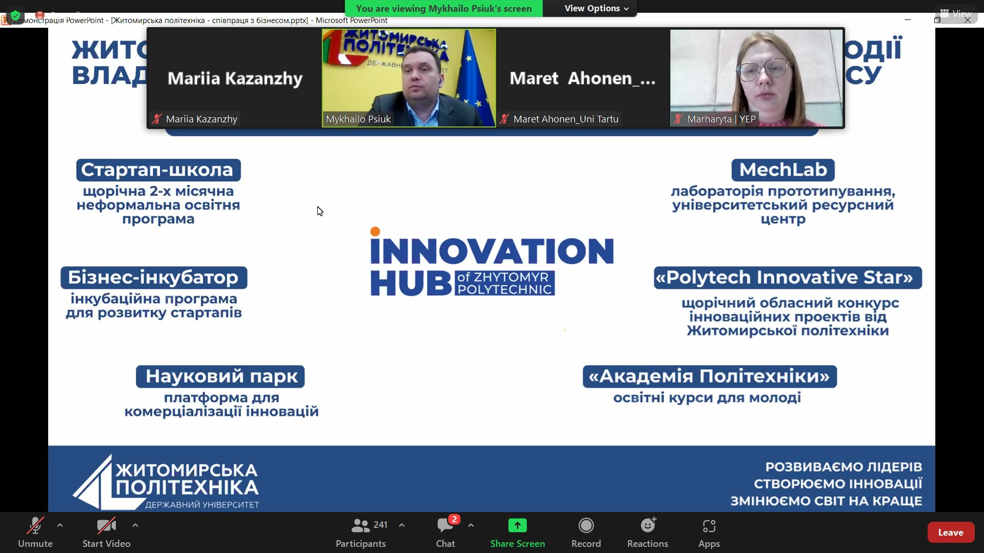 6 березня 2023 року відбувся перший вебінар із серії зустрічей, передбачених програмою «StarterNetwork». Їх метою є розвиток інноваційного та підприємницького потенціалу українських університетів та передача досвіду і кращих практик естонської екосистеми.