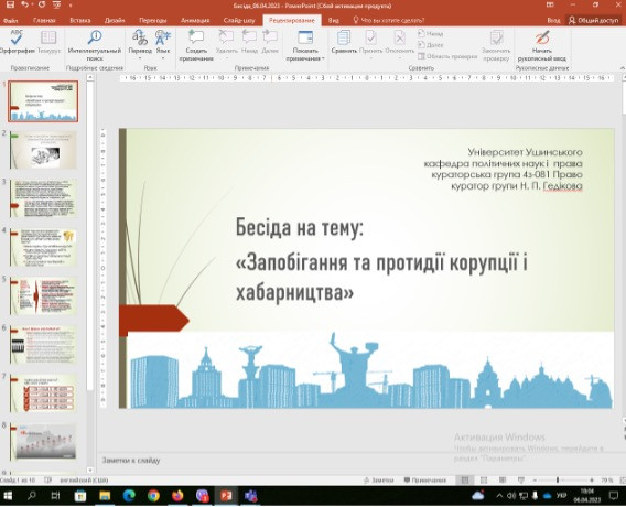 Крім того, в ході виконання індивідуального плану науково-педагогічної практики кожен із аспірантів відвідував заняття наукових керівників, інших викладачів кафедри, наукові заходи Центру соціально-політичних досліджень «Політікус», до організації та реалізації яких долучалися й самі аспіранти. Зокрема, Ашот МАНАСАРЯН провів кураторську годину на тему «Запобігання та протидія корупції і хабарництва» для студентів 4 року заочної форми навчання спеціальності 081 Право, Василь ІЄРЕМІЯ в межах реалізації міжнародного проєкту «Always Near» виступав в якості експерта та виконавця освітньої програми «Business Bridge» для внутрішньо переміщених осіб та ветеранів/ок російсько-української війни, Юлія МУЖЕЛЯК брала участь в організації профорієнтаційних заходів кафедри, Андрій БАХМЕТЬЄВ – організації тематичного круглого столу з питань евроінтеграції України.
