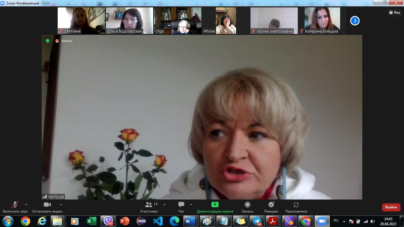 2Задля удосконалення якості підготовки магістрів 20 квітня 2023 року кафедрою загальної та диференціальної психології організовано онлайн - зустріч проєктної групи з оновлення та супроводу освітньо-професійної програми «Практична та прикладна психологія» підготовки фахівців другого (магістерського) рівня вищої освіти за спеціальністю 053 «Психологія» у складі: гаранта програми канд. психол. наук, доцента кафедри загальної та диференціальної психології О.О.Водолазської; робочої групи у складі: завідувачки кафедри загальної та диференціальної психології, доктора психол. наук, професора О.П.Саннікової, доктора психол. наук, професора Ю.Б.Максименка, канд. психол. наук, доцента кафедри загальної та диференціальної психології Н.І.Меленчук зі стейкхолдерами : президентом Асоціації «Психея» (м. Одеса) Гертрудою Вікторівною Шпатаковською, директором Комунальної Установи «Одеський інклюзивно-ресурсний центр №5 Світланою Олександрівною Герегою, а також з роботодавцем канд. психол. наук, директором психологічного консультативного Центру Оленою Миколаївною Гайворонською. На зустрічі присутніми були викладачі кафедри (доц. Ю. Г. Черножук, ст.викл. І. О. Гордієнко, доц. Т. Ю. Ульянова, доц. О. А. Оріщенко, доц. І. А. Василенко, лаборант О. І. Зелененька) та здобувачі вищої освіти за спеціальністю 053 Психологія за другим (магістерським) рівнем першого та другого року навчання. Під час зустрічі присутні виявили зацікавленість, відзначивши необхідність і унікальність освітньо-професійної програми «Практична та прикладна психологія». Зокрема, практично, усі доповідачі у своїх висловлюваннях звертали увагу на те, що ОПП «Практична та прикладна психологія» усім своїм змістом спрямована на здійснення психологічної допомоги різним категоріям населення у воєнний та повоєнний час. Знання, які отримуватимуть здобувачі за вивченням обов’язкових та вибіркових дисциплін, будуть сприяти оволодінню компетентним прийняттям фахових рішень у складних і непередбачуваних умовах реальності та спрямованості на розбудову нашої країни після війни. За висловлюваннями стейкхолдерів, освітньо-професійна програма є фундаментальною базою у підготовці практичних психологів, які, оволодівши навичками та вміннями практичної роботи в системі соціально-психологічної служби, консультативно-корекційної індивідуальної та групової професійної діяльності, зможуть самостійно надавати суспільству психологічну допомогу: на підприємствах, у організаціях, психологічних центрах, у приватній практиці тощо. Особливо важливим під час бесіди був момент акцентування уваги присутніх на тому, що в реалізації змісту освітньої програми використовуються доробки наукової школи доктора психологічних наук, професора О.П.Саннікової «Психологія індивідуальних відмінностей (індивідуально-психологічні особливості особистості)». Онлайн – зустріч членів кафедри загальної та диференціальної психології, здобувачів вищої освіти другого (магістерського) рівня та стейкхолдерів з приводу обговорення проєкту освітньо-професійної програми «Практична і прикладна психологія» пройшла дружньо та продуктивно.