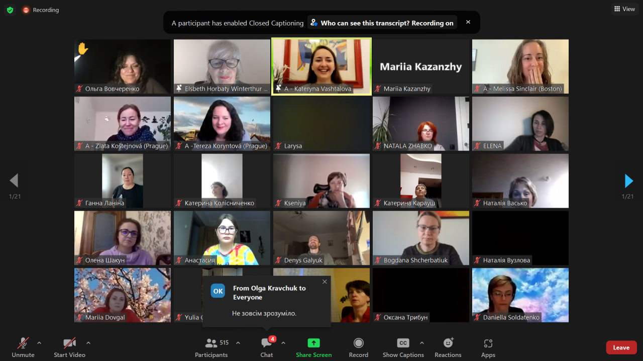 Учасники мали можливість зробити корисні вправи для себе, поповнити скарбничку інструментів для роботи з іншими, відчути підтримку міжнародної та української професійних спільнот і підтримку один одного.