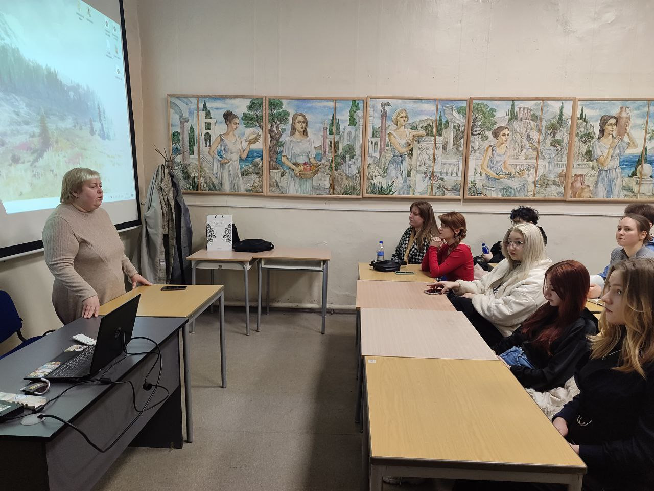 5 березня 2026 року на художньо-графічному факультеті відбулась гостьова лекція старшого викладача кафедри української та зарубіжної літератур історико-філологічного факультету Тетяни Горанської, в якій вона представила нову вибіркову дисципліну «Літературні образи та сюжети в образотворчому мистецтві». Організатором і модератором зустрічі була кандидат мистецтвознавства, викладач кафедри теорії та методики ДПМ та графіки Олена Спасскова.