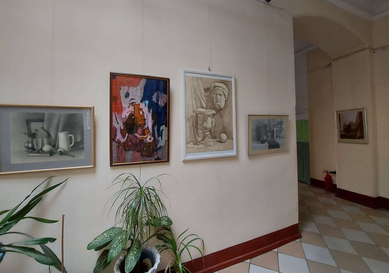В експозиції можна побачити живописні роботи у техніці акварелі та олійних фарб, рисунок різними матеріалами, художнє ткацтво, розпис тканини, роботу з папером, скульптурні рельєфи. Студенти на різних етапах навчання та на різних дисциплінах отримують уміння відтворювати реалістичне зображення та стилізувати форму відповідно до задуму, певного виду мистецтва та техніки виконання.