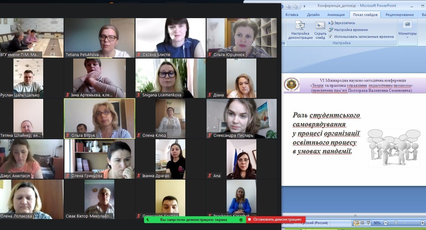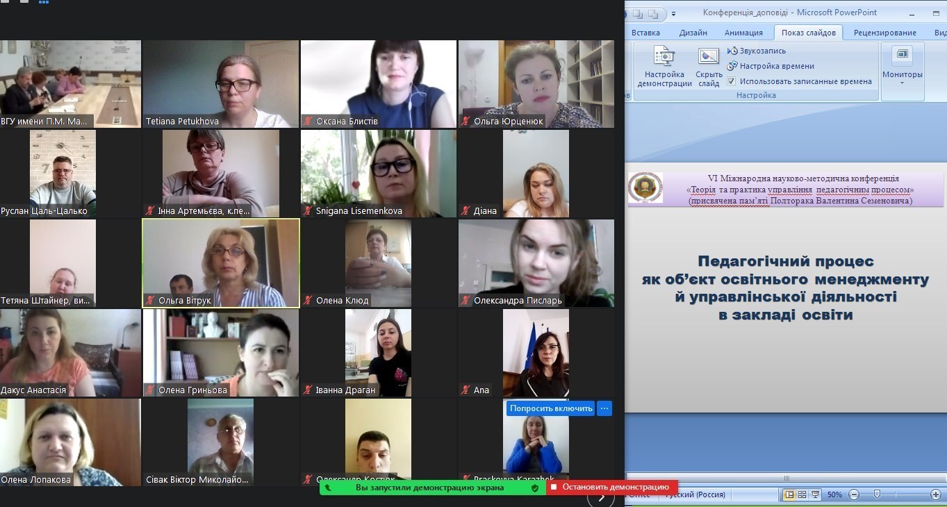 26-28 травня 2021 року кафедрою технологічної та професійної освіти художньо-графічного факультету Університету Ушинського організовано та проведено в он-лайн форматі VІ Міжнародна науково-методична конференція «Теорія та практика управління педагогічним процесом» (присвячена пам’яті Полторака Валентина Семеновича).