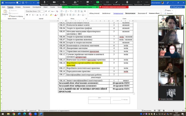 4 травня 2023 року в межах громадського обговорення проєктів освітніх програм на 2023-2024 навчальний рік відбулась онлайн-зустріч членів робочої групи та викладачів кафедри образотворчого мистецтва з Наталією Романівною Кубриш, кандидатом мистецтвознавства, доцентом кафедри рисунка, живопису та архітектурної графіки Одеської державної академії будівництва та архітектури, членом Національної спілки художників України.