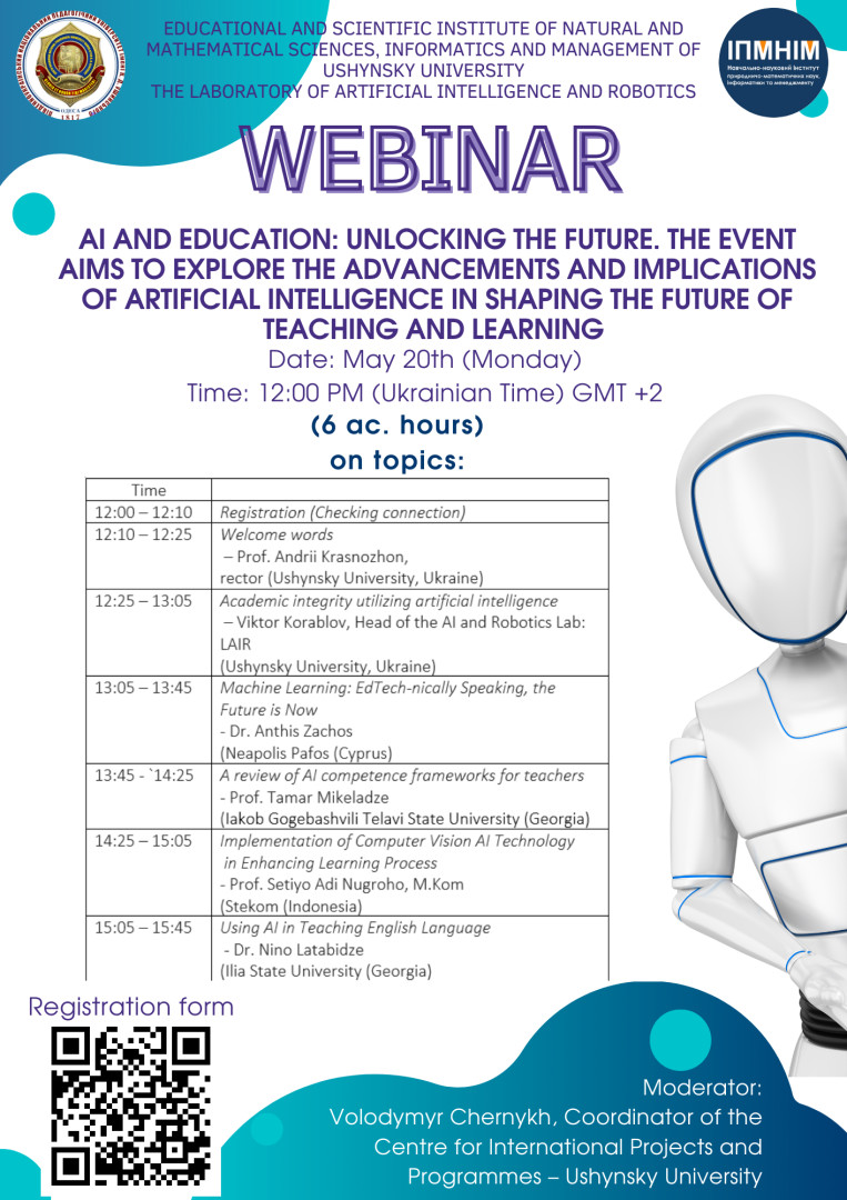 The Laboratory of Artificial Intelligence and Robotics at Ushynsky University is organizing a webinar:
