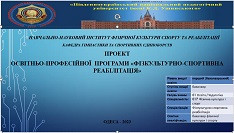 8 грудня 2023 року в он-лайн форматі відбулась зустріч робочої групи ОПП «Фізкультурно-спортивна реабілітація» підготовки здобувачів першого (бакалаврського) рівня вищої освіти зі спеціальності 017 «Фізична культура і спорт» галузі знань 01 «Освіта/Педагогіка».