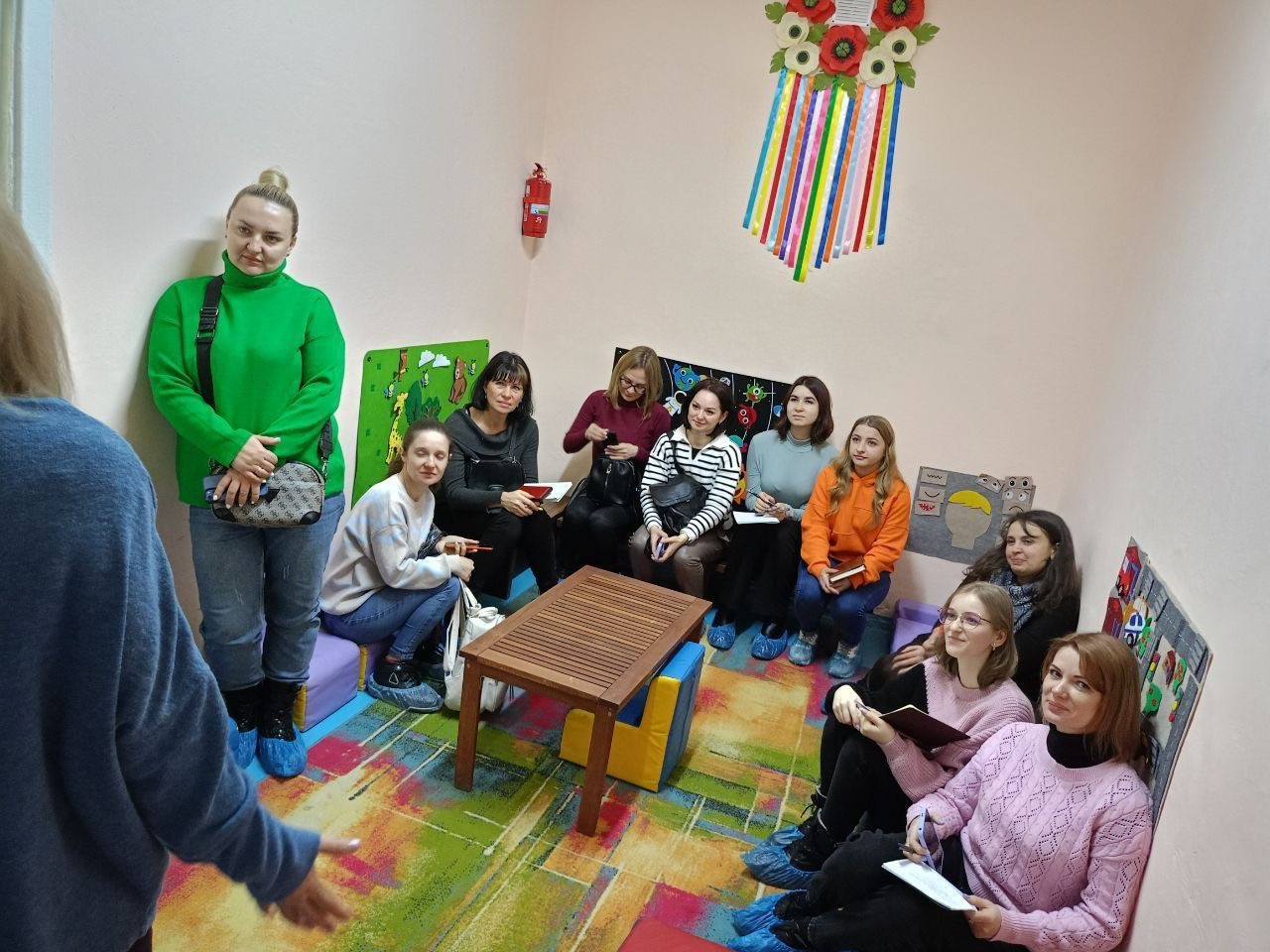 В ході зустрічі магістрантам показали особливості роботи дошкільного закладу освіти в умовах військового стану: роботу з дітьми у кімнаті безпеки, де відпрацьовуються різні ситуації з ОБЖД та правила мінної безпеки, в якій створено належні умови для емоційного розвантаження дітей.