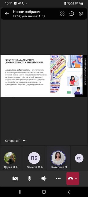 29 березня 2024 року в межах Тижня доброчесності в ПНПУ ім. К.Д.Ушинського було проведено захід «Інструменти та способи мотивацій здобувачів освіти до академічної доброчесності»