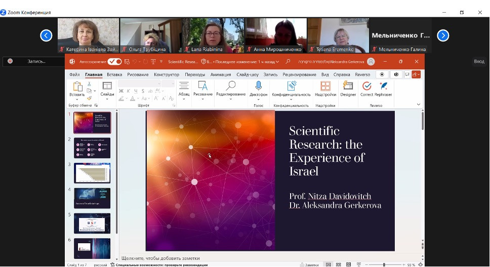 Запрошеними лекторами були Professor Nitza Davidovitch (Head of Education Department, Ariel University) та Associate Professor Aleksandra Gerkerova (Education Department, Ariel University), які розповіли про особливості проведення наукової роботи у вишах Ізраїлю, зокрема у Аріельському Університеті.
