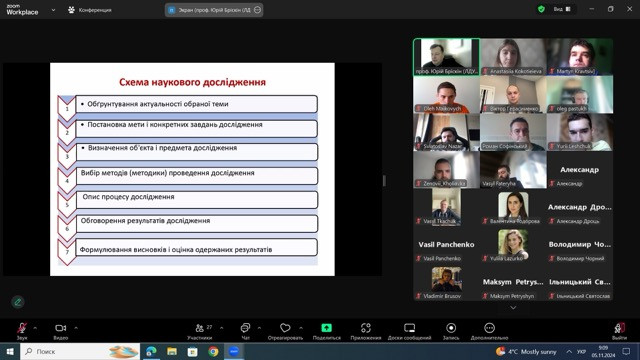 Під час лекції обговорювалась наступні питання: схема наукового дослідження; аспекти, які необхідно враховувати при виборі теми дослідження; вимоги до завдань дослідження.