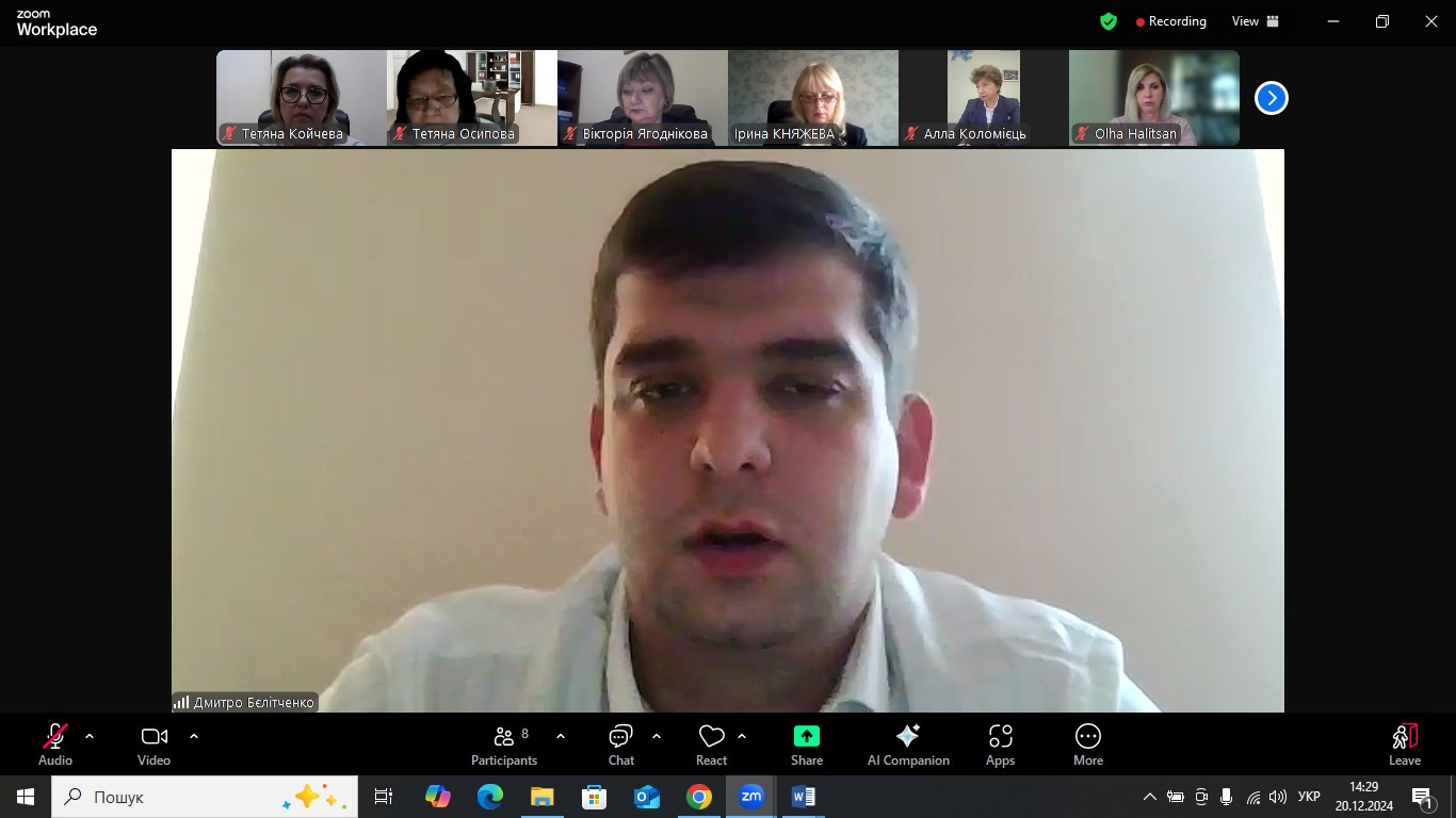 В Університеті Ушинського 20 грудня 2024 року на платформі Zoom відбувся успішний захист дисертації аспіранта кафедри педагогіки Дмитра БЄЛІТЧЕНКА з теми «Формування науково-дослідницької культури майбутніх учителів фізико-математичних дисциплін» на здобуття наукового ступеня доктора філософії зі спеціальності 011 Освітні, педагогічні науки.