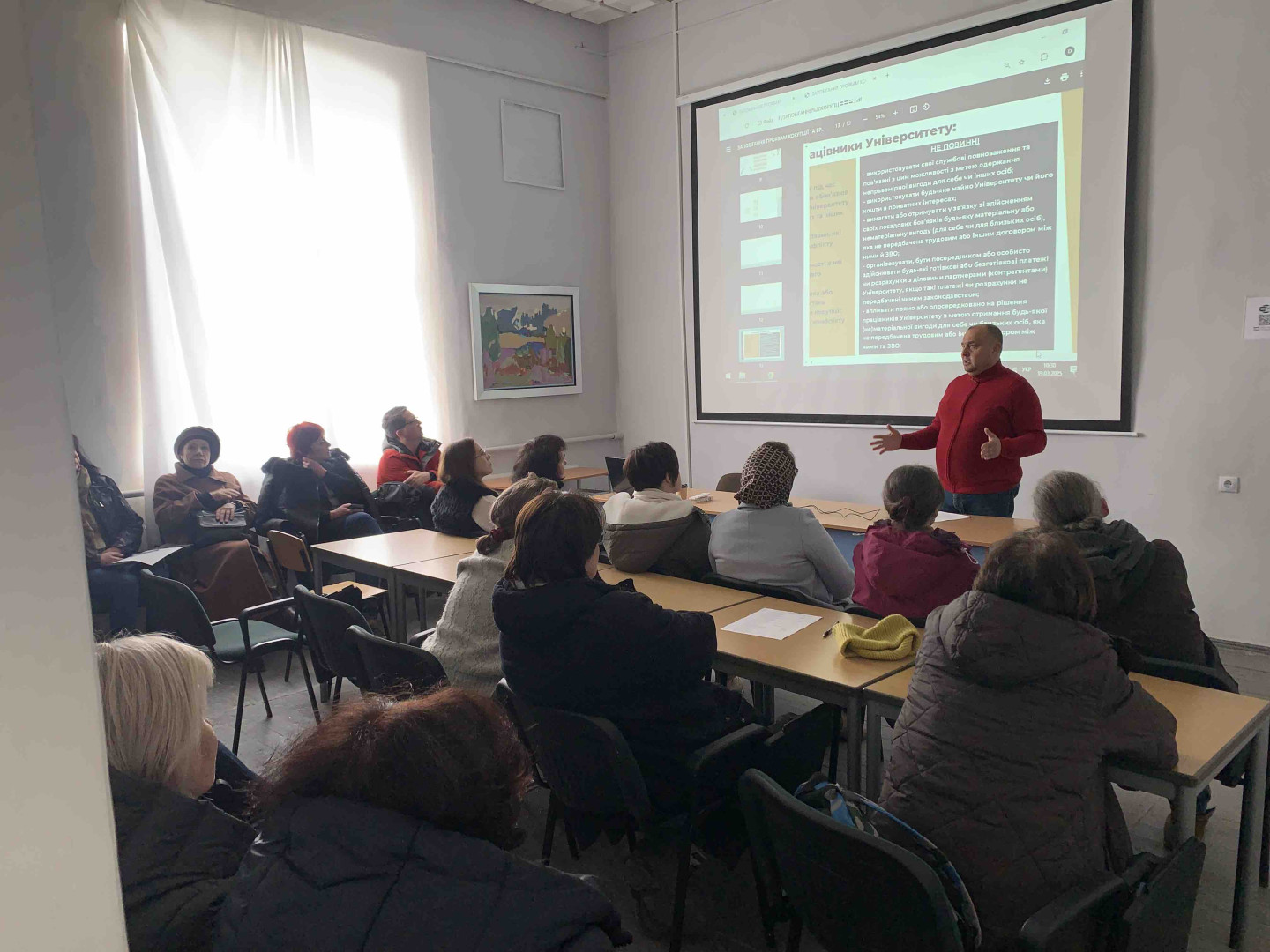 У межах Тижня доброчесності - 2025 в Державному закладі «Південноукраїнський національний педагогічний університет ім.. К.Д. Ушинського з метою ознайомлення з вимогами дотримання антикорупційного законодавства України у сфері вищої освіти відбулися інформаційно — роз’яснювальні зустрічі зі здобувачами вищої освіти всіх факультетів та навчально-наукових інститутів, а також науково-педагогічними працівниками, керівництвом та адміністрацією ЗВО з Сергієм ДЕРЕВЯНКІНИМ, кандидатом юридичних наук, доцентом, керівником Уповноваженого підрозділу з питань запобігання та виявлення корупції в університеті.