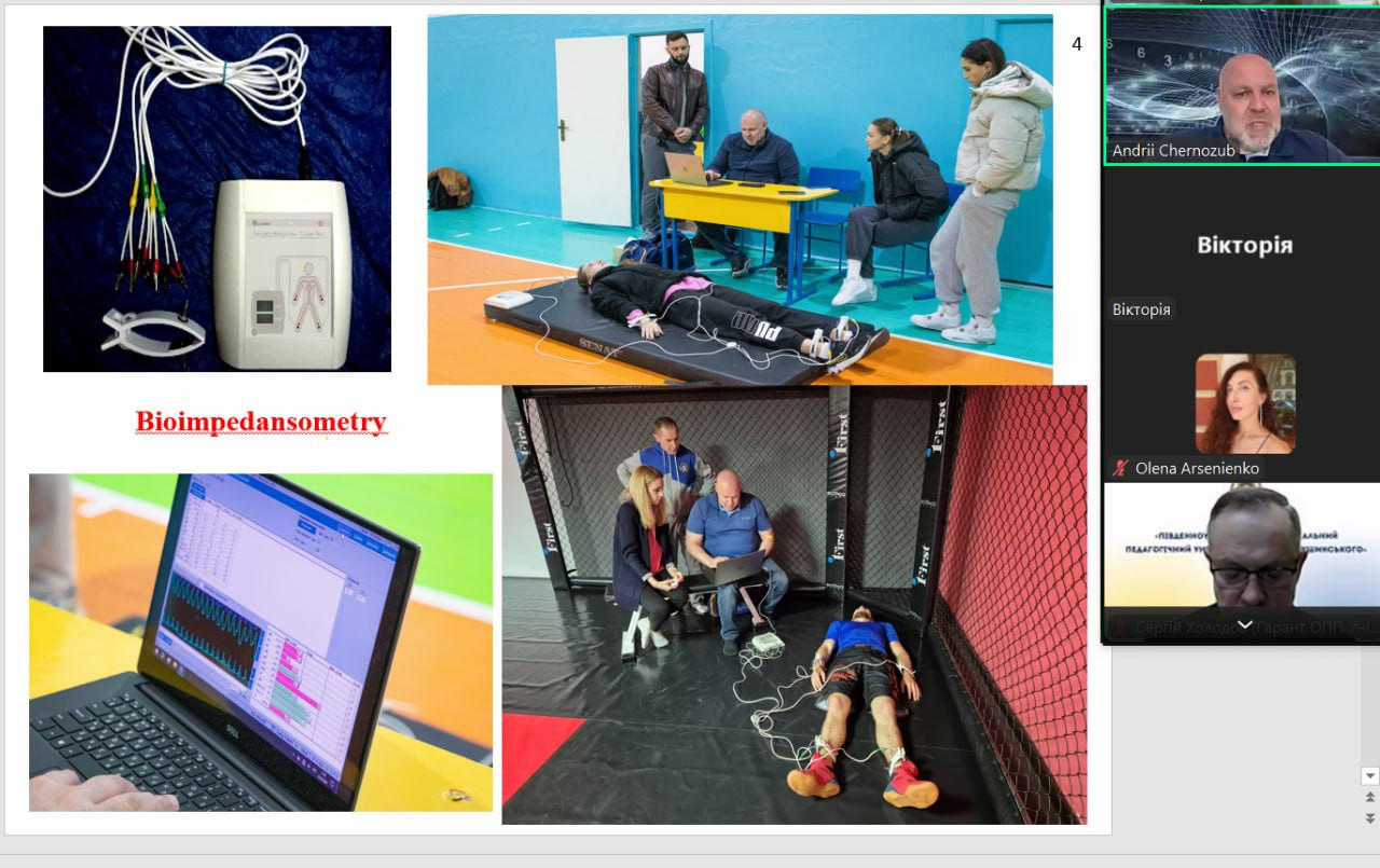 8 квітня 2025 року на базі кафедри біології та здоров’язбережувальних технологій ДЗ «Південноукраїнський державний університет імені К.Д. Ушинського» для здобувачів вищої освіти другого (магістерського) рівня спеціальності 017 фізична культура і спорт (Адаптивна фізична культура) було проведено Онлайн-вебінар "Ефективність інтегральних кінезіологічних моделей реадаптації нервово-м'язової системи після тривалої гіпокінезіі" Спікер вебінару Чернозуб Андрій Анатолійович, доктор біологічних наук, професор, професор кафедри теорії спорту та фізичної культури Волинського національного університету імені Лесі Українки, директор Науково-дослідного центру сучасної кінезіології KINEZUS ознайомив з методами оцінки вихідного рівня функціонального стану організму людини та контролем за його динамікою в процесі використання запропонованих моделей занять направлених на реадаптацію нервово-м’язової системи.