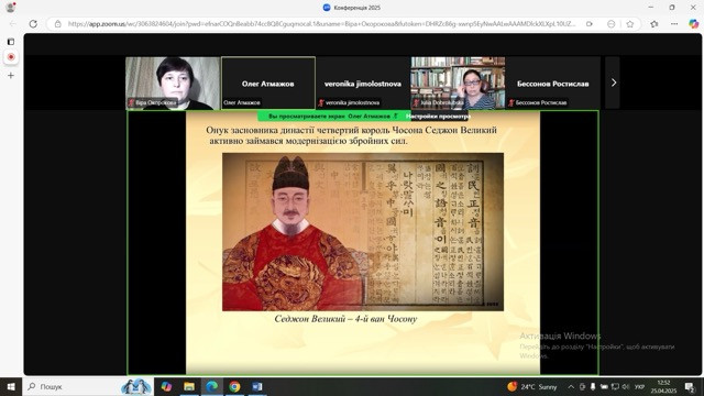 - «Армія держави Чосон» (Атмажов О. Ю., здобувач другого (магістерського) рівня вищої освіти, спеціальності 014 Середня освіта (Історія) ДЗ «Південноукраїнський національний педагогічний університет імені К. Д. Ушинського).