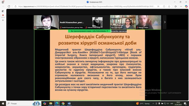 - «Шерефеддін Сабункуоглу та розвиток хірургії османської доби» (Добролюбська Ю. А., д. філос. н., професор кафедри всесвітньої історії та методики її навчання).