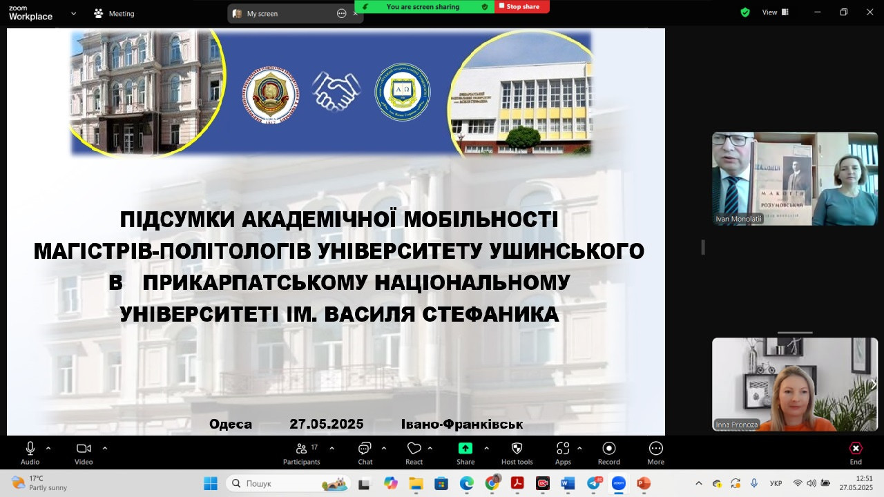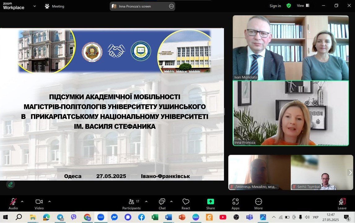 27 травня 2025 року відбулася відкрита підсумкова комунікативна зустріч у межах реалізації програми національної академічної мобільності здобувачів другого (магістерського) рівня вищої освіти спеціальності «Політологія» ОП «Політологія. Українські та Європейські політичні студії» з професором Монолатієм Іваном Сергійовичем.
