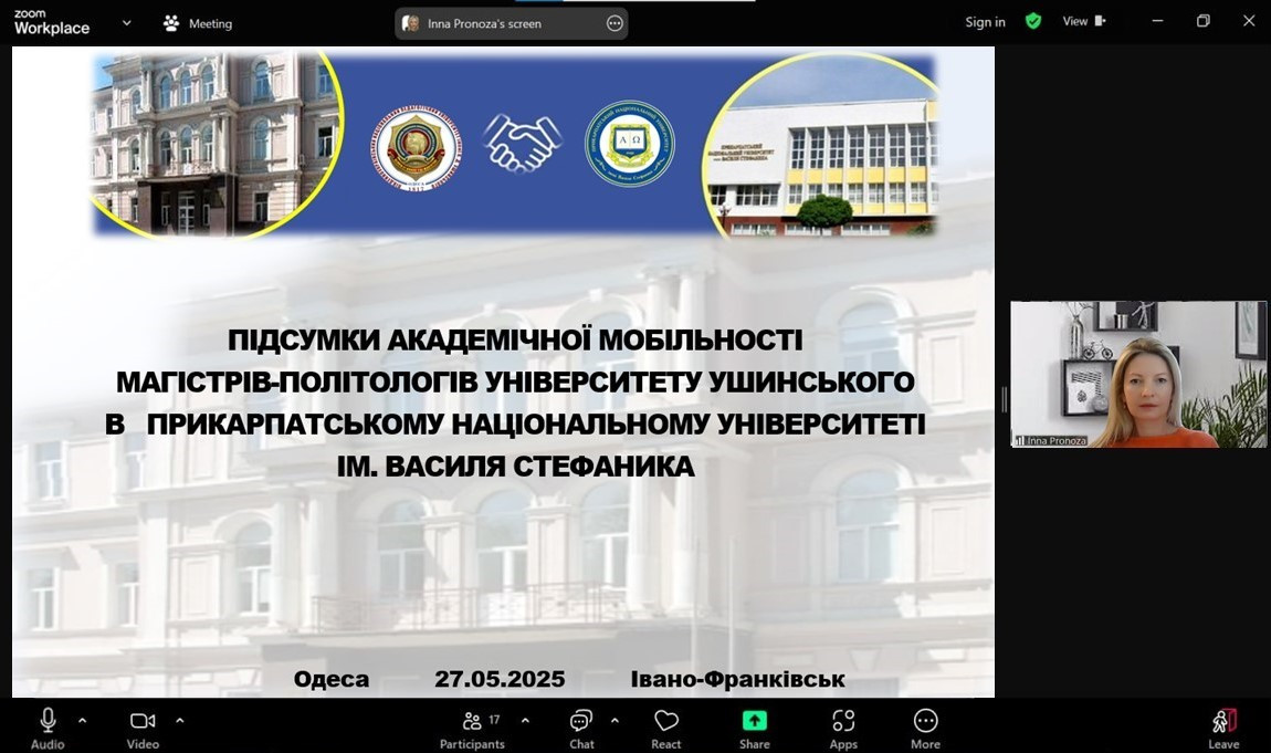 Вагомий внесок у реалізацію програми мобільності на базі Карпатського національного університету здійснила доцент кафедри політичних наук Іванна ЛОМАКА — гарант магістерської освітньої програми «Політичний менеджмент у сфері національної безпеки». Завдяки її фаховій координації та організаційній підтримці було забезпечено ефективне впровадження навчального курсу й належні умови для здобуття якісного академічного досвіду магістрантами Університету Ушинського.