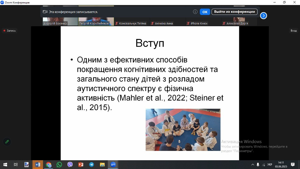3 червня 2025 року на базі кафедри біології та здоров’язбережувальних технологій ДЗ «Південноукраїнський державний університет імені К.Д. Ушинського» для здобувачів вищої освіти другого (магістерського) рівня спеціальності 017 фізична культура і спорт (Адаптивна фізична культура), а також для інших здобувачів цієї спеціальності, у межах меморандуму про співпрацю, було проведено відкриту лекцію «Когнітивні та вегетативні властивості у дзюдоїстів з аутизмом» яку провів Коробейников Георгій Валерійович – доктор біологічних наук, професор, Заслужений діяч науки і техніки України, професор-дослідник (Німецький університет спорту (Німеччина, м. Кельн).