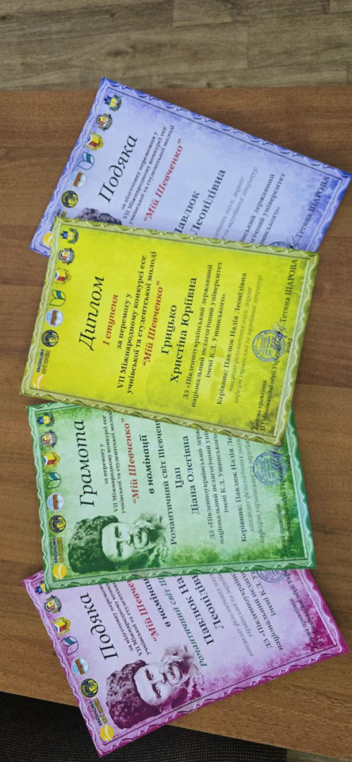 Щиро вітаємо студентку 1 курсу історико-філологічного факультету Грицько Христіну з перемогою у VII Міжнародному конкурсі есе учнівської та студентської молоді "Мій Шевченко", який було організовано Державною науковою установою «Інститут модернізації змісту освіти» спільно з Громадською організацією «Інноваційні обрії України».