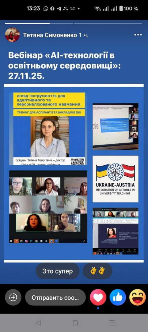 - “Штучний інтелект в освіті: інструменти для адаптивного та персоналізованого навчання”, Бріцкан Т.Г., доктор філософії, доцент кафедри дошкільної та початкової освіти ІДГУ.