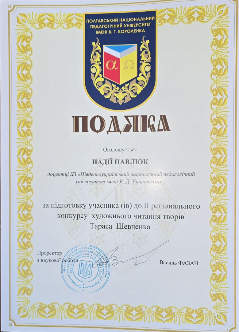 Студентів до участі в конкурсі підготувала кандидатка філологічних наук, доцентка кафедри української та зарубіжної літератур Павлюк Надія Леонідівна.