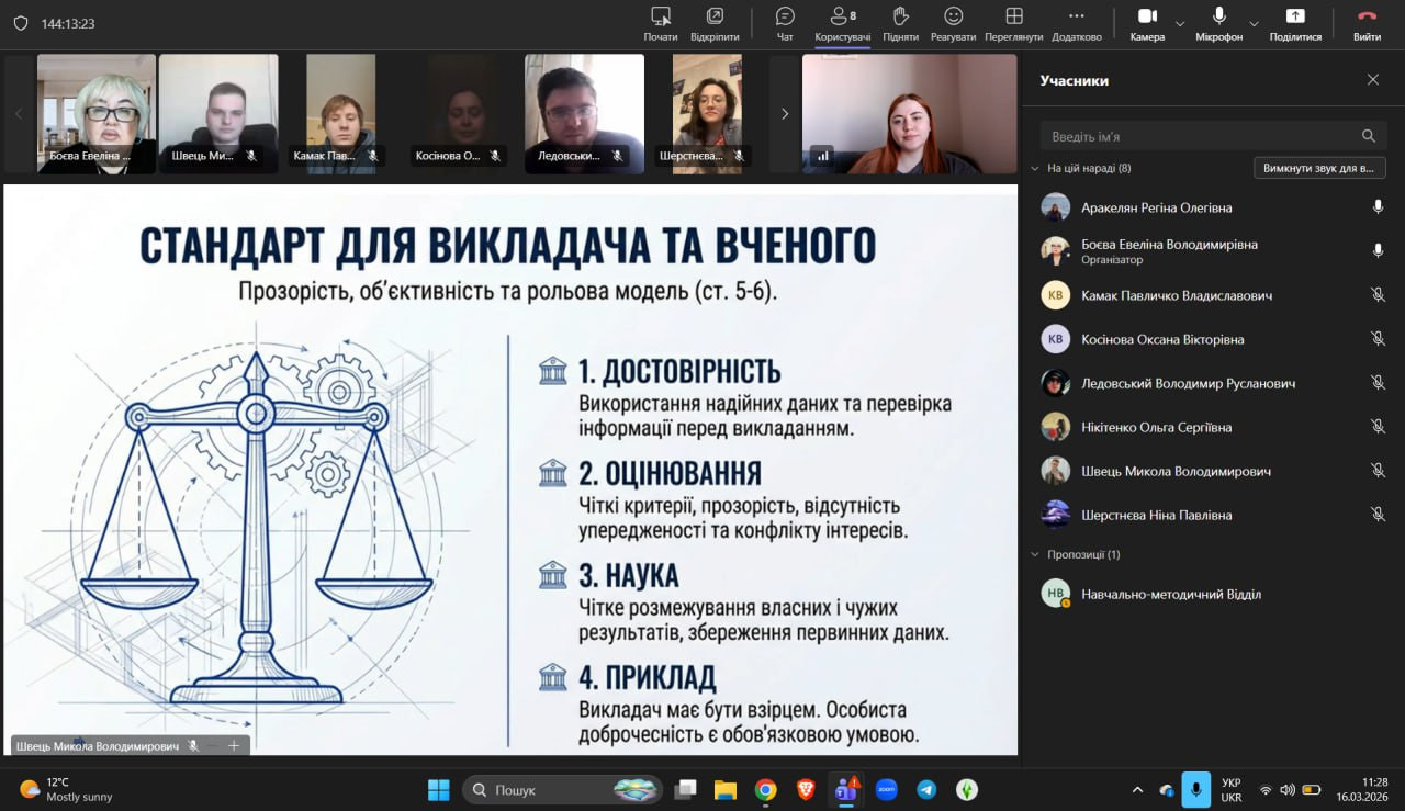 Під час заходу обговорювалися питання академічної доброчесності, правил цитування наукових джерел, уникнення плагіату та важливості самостійності під час написання магістерських робіт. Особливу увагу було приділено етичним нормам наукової діяльності та формуванню академічної культури молодих дослідників.