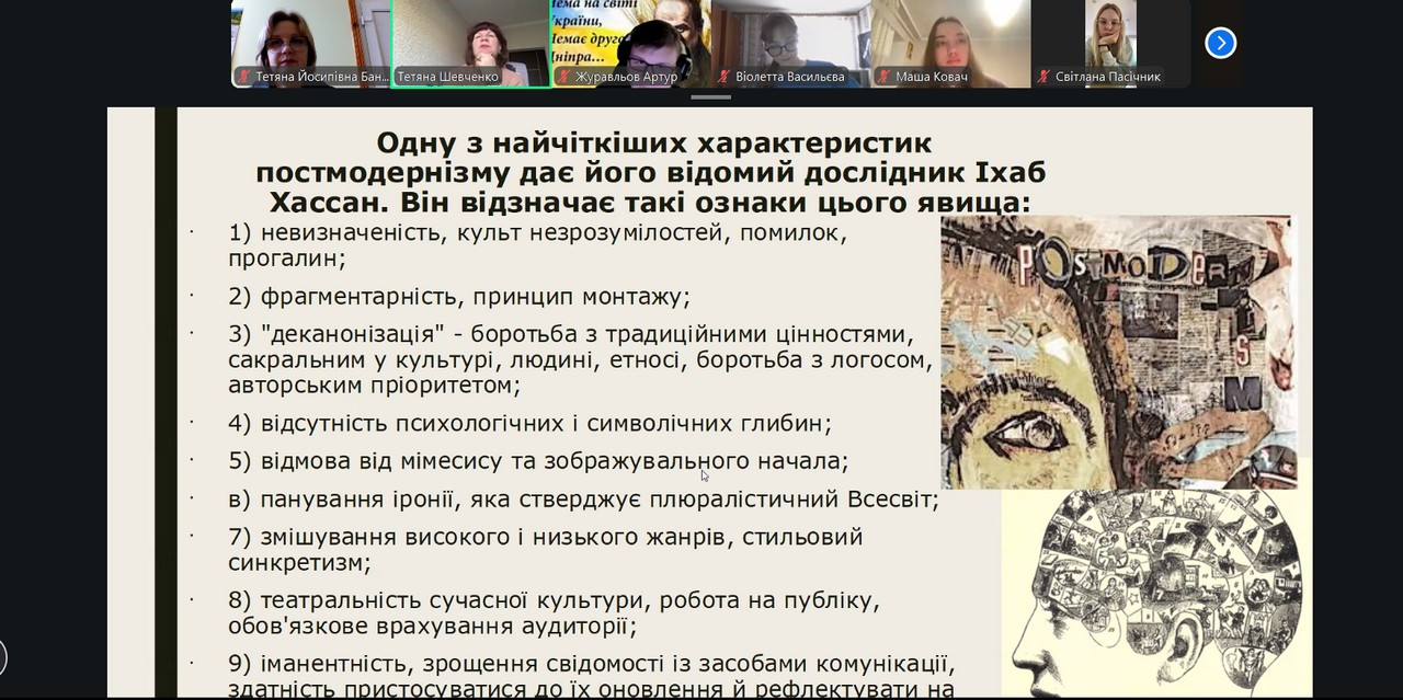 З метою впровадження гостьових лекцій в освітній процес Університету Ушинського кафедрою української та зарубіжної літератур було запрошено доктора філологічних наук, професора, завідувача кафедри української літератури та компаративістики Одеського національного університету імені І. І. Мечникова Шевченко Тетяну Миколаївну – відому літературознавицю, дослідницю сучасної української літератури, співавторку унікального сучасного видання «Історія української літератури» у 12-ти томах (2024 р.), яка 19 березня 2026 року в межах дисципліни доцента кафедри Бандури Т. Й. «Актуальні проблеми світової літератури» магістрам 1-го року навчання прочитала лекцію «Художні напрями сучасної української літератури». В лекції було презентовано, осмислено, досліджено основні художні напрями й школи в сучасній українській літературі, їх соціо-культурну специфіку й риси, зокрема постмодернізм, метамодернізм, неореалізм, діджитал-модернізм та ін. Матеріал лекції-візуалізації відзначався ґрунтовністю, інноваційністю, сучасними методологіями, цікавими літературними персоналіями, явищами, рецептивними експериментами. Подібні гостьові лекції вже стали традицією в сприятливій навчально-науковій співпраці Університету Ушинського та Одеського національного університету імені І. І. Мечникова.