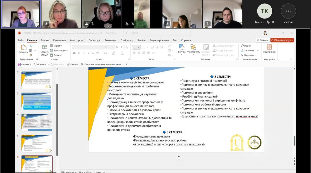 На зустрічі обговорювалися стан реалізації та проєкти освітніх програм усіх рівнів вищої освіти за спеціальністю С4 Психологія, які діють в Університеті Ушинського, а саме:
