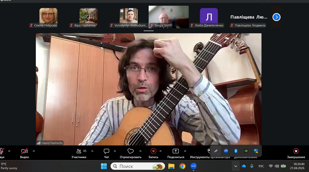 Відкрита лекція угорського гітариста і композитора Давіда Павловича викликала надзвичайний інтерес у студентів-музикантів та аспірантів кафедри музичного мистецтва і хореографії. На базі Міжнародного освітньо-мистецького проєкту «ARS SONORA: INTERNATIONAL GUITAR HUB 21 квітня 2026 року була справжня лекція-концерт. Нагадаємо, що Давід Павлович виступав як соліст у понад 30 країнах на чотирьох континентах, у таких залах, як Карнегі-хол у Нью-Йорку, Оперний театр у Каїрі, Велика зала Будапештської академії музики та Шанхайська консерваторія. За свою діяльність у галузі сучасної музики він був нагороджений премією Artisjus. Він володіє вісьмома іноземними мовами і проводить майстер-класи по всьому світу. Працював музичним дизайнером для Sony Pictures Television та композитором для декількох кінопроєктів.