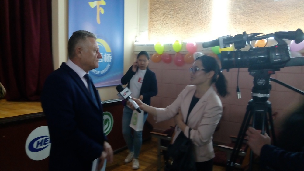 Ректор Університету Ушинського академік О. Я. Чебикін відповів на численні запитання присутніх на зустрічі кореспондентів провідних китайських ЗМІ — Центрального телебачення КНР, Інформаційної агенції “Сіньхуа”, газети “Женьмінь Жибао”.