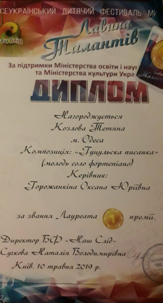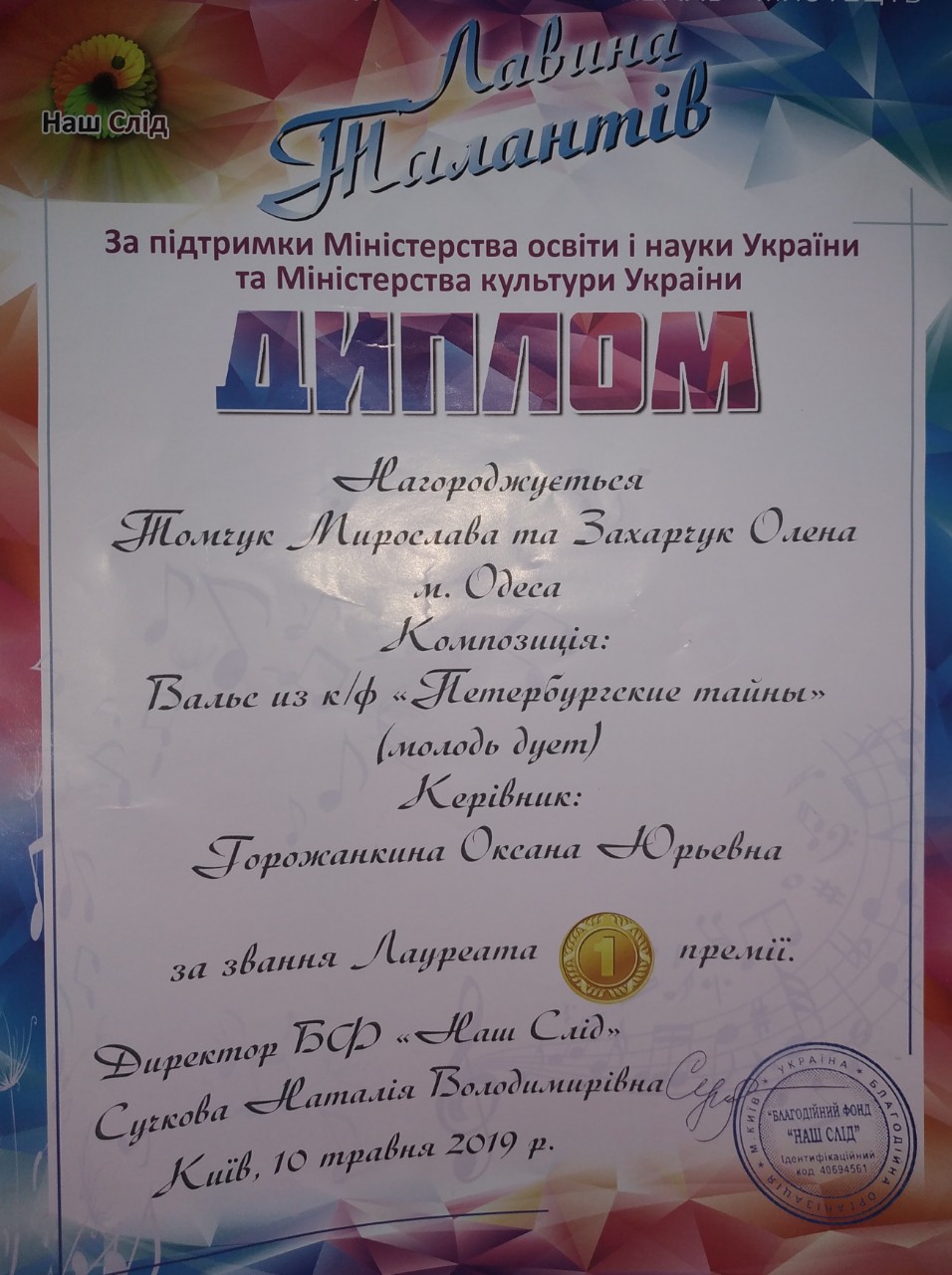 Вітаємо переможців та їх викладача Горожанкіну О.Ю. й бажаємо їм творчої наснаги й подальших успіхів у підкоренні нових висот!