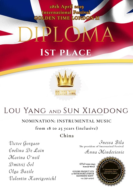 Магістранти факультету музичної та хореографічної освіти Університету Ушинського Ло Ян та Сун Сяодун стали лауреатами І премії VIII Міжнародного конкурсу «Golden Time» (м. Лондон) у номінації «Інструментальний ансамбль» (клас доцента Горожанкіної О.Ю.).
