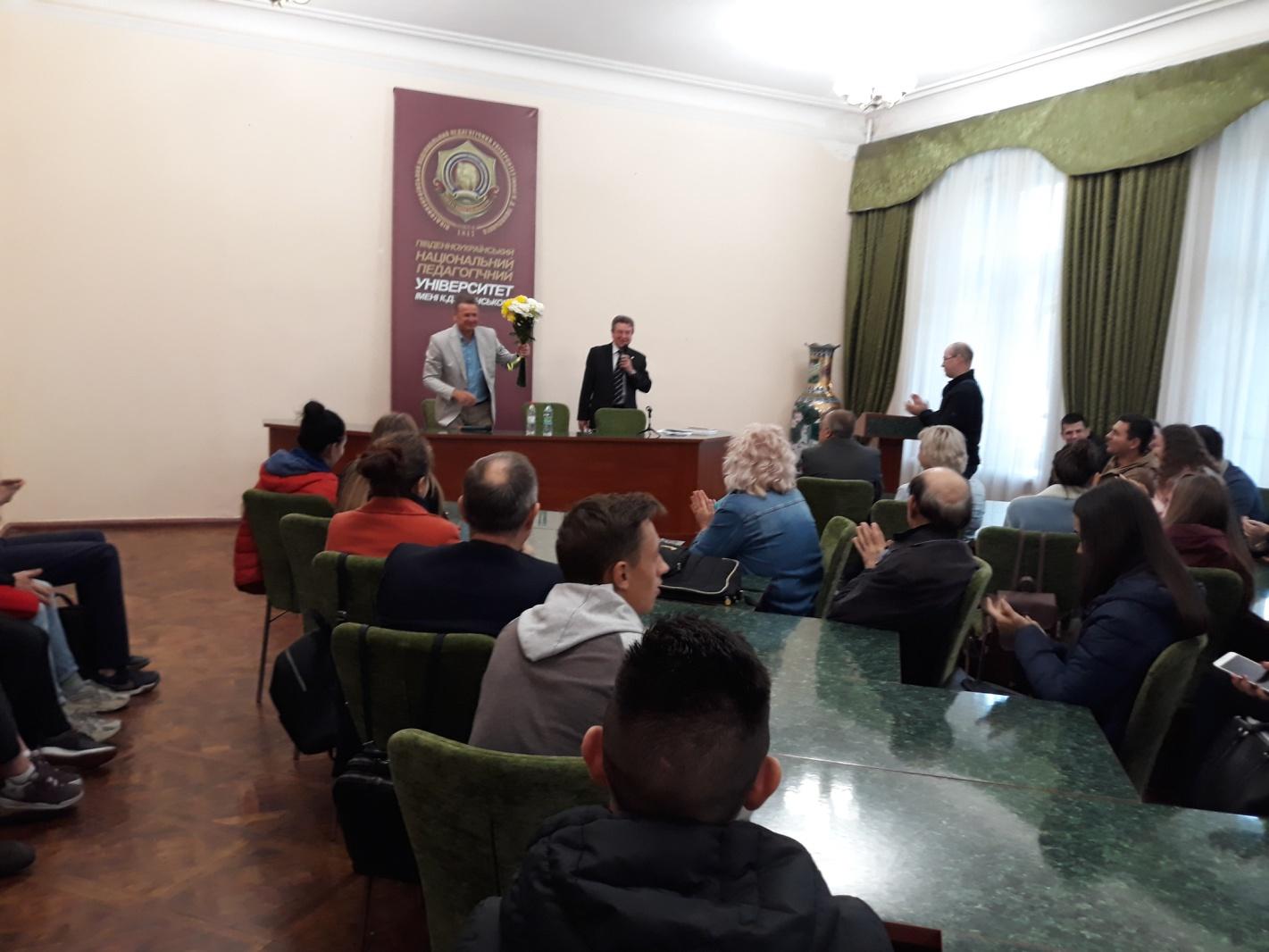 Зустріч відбулася в плані реалізації домовленостей міжнародного договору між Університетом Ушинського і Мозирським державним педагогічним університетом імені І.П. Шамякіна, доцентом якого є Володимир Володимирович.