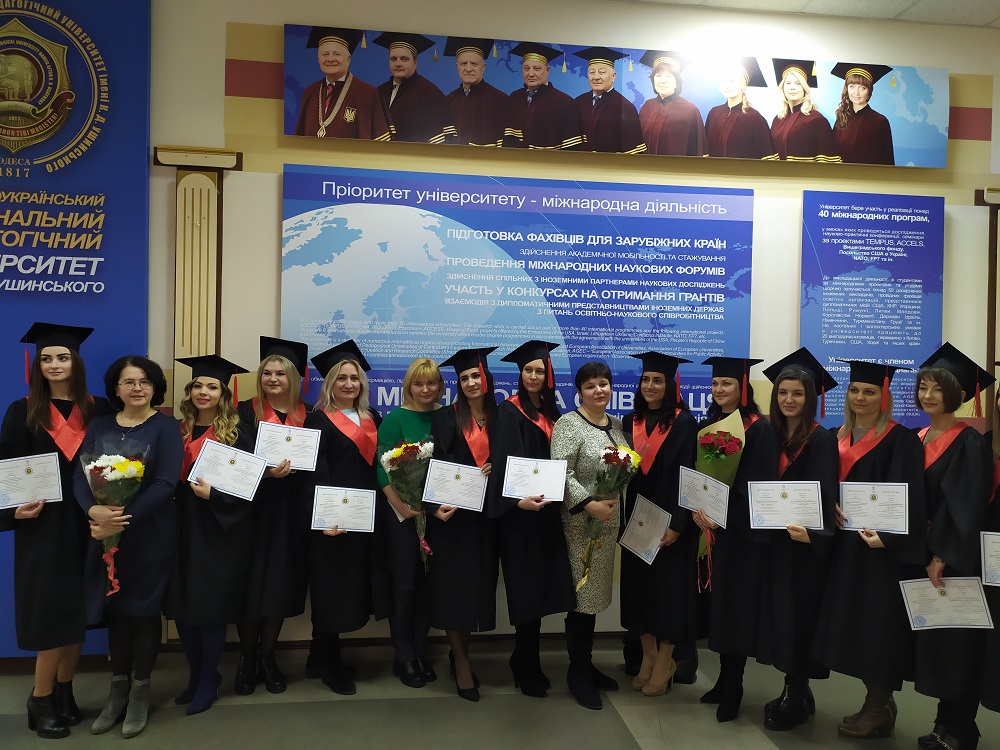Кафедрою освітнього менеджменту та публічного управління 21 лютого 2020 року було організовано та проведено церемонію вручення дипломів магістрів випускникам спеціальності «Менеджмент» (магістр з управління, керівник підприємства, установи та організації (у сфері освіти та виробничого навчання), менеджер освітніх програм).